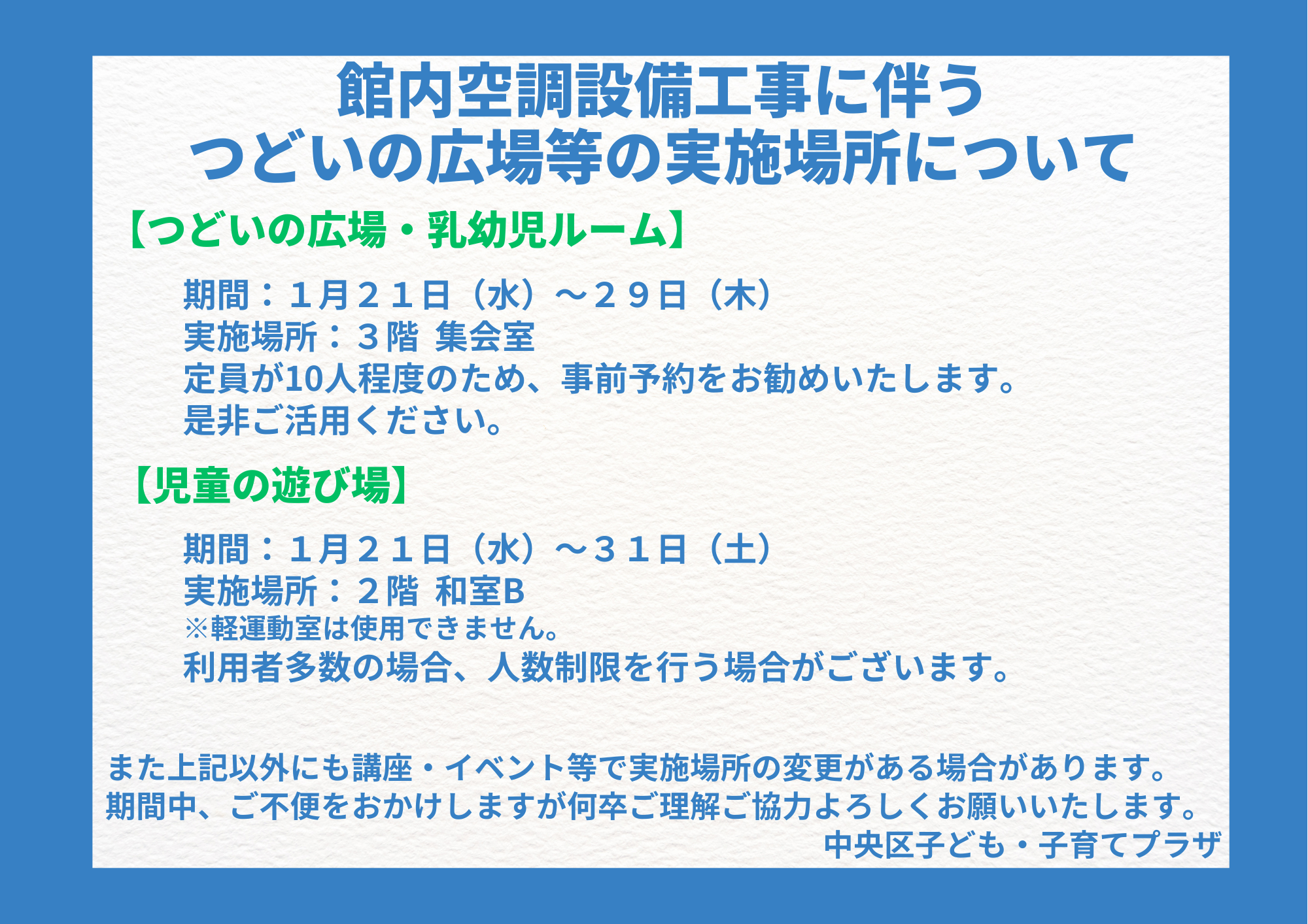 館内空調設備工事に伴うつどいの広場等の実施場所について