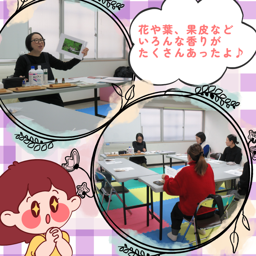 アロマを扱った講座は初めてでしたが、参加してくれたみなさんは、講師の話に聞き入って集中されていました。